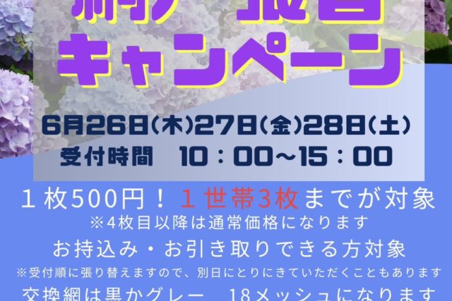 ⋆◡̈⋆⋆◡̈⋆網戸張替キャンペーン⋆◡̈⋆⋆◡̈⋆ お得なキャンペーンやっちゃいますよ✨