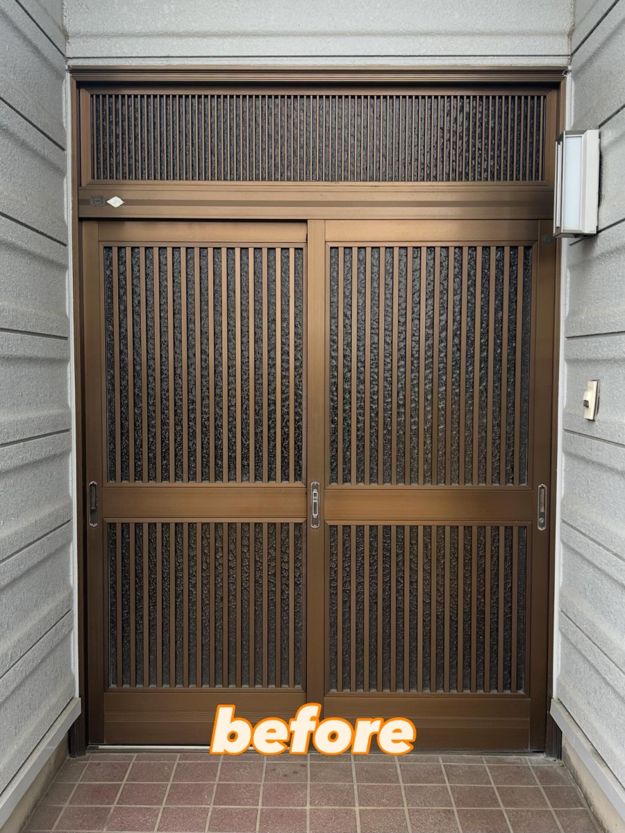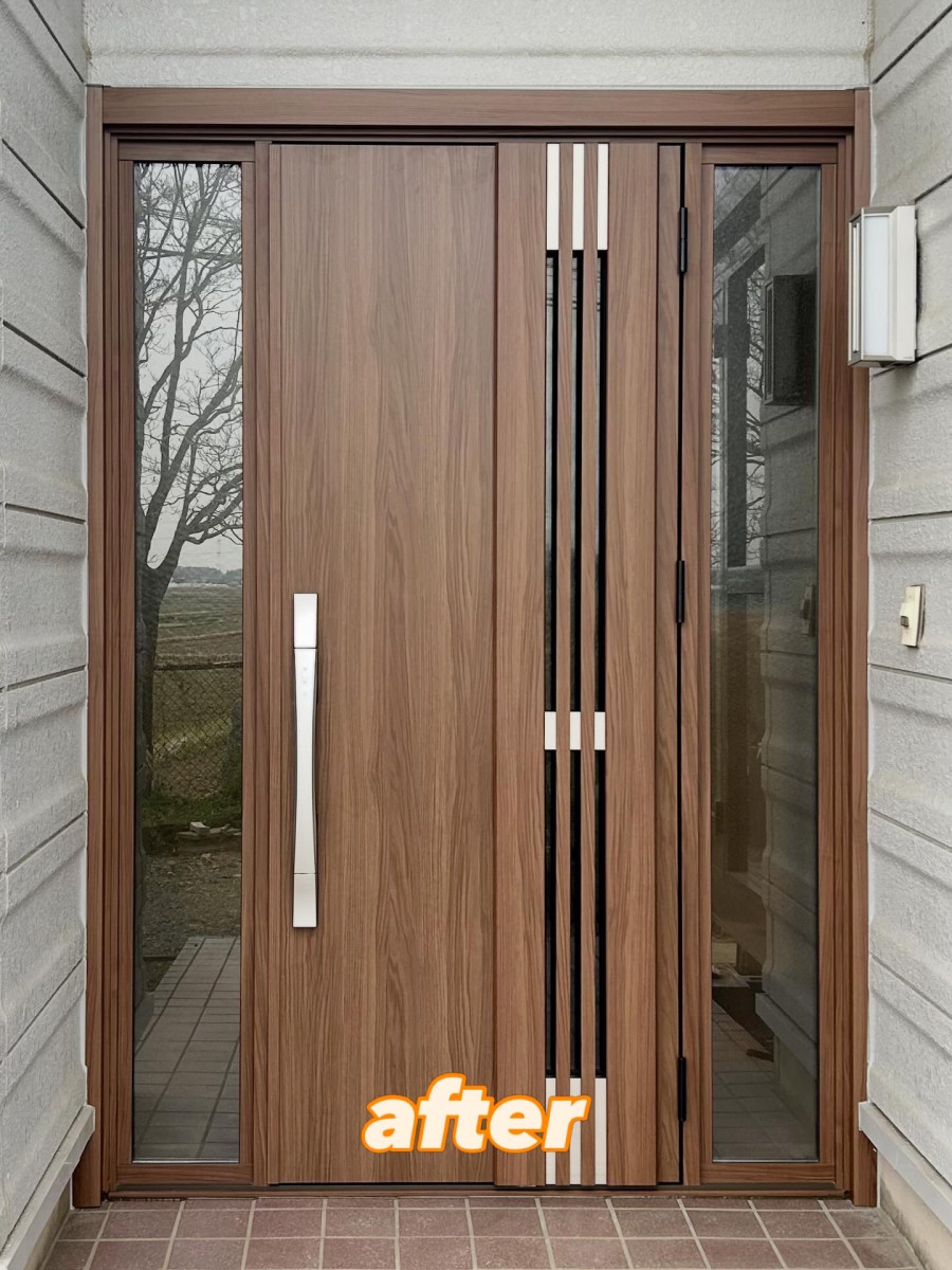 玄関引戸から木目でおしゃれな両袖付きドアに